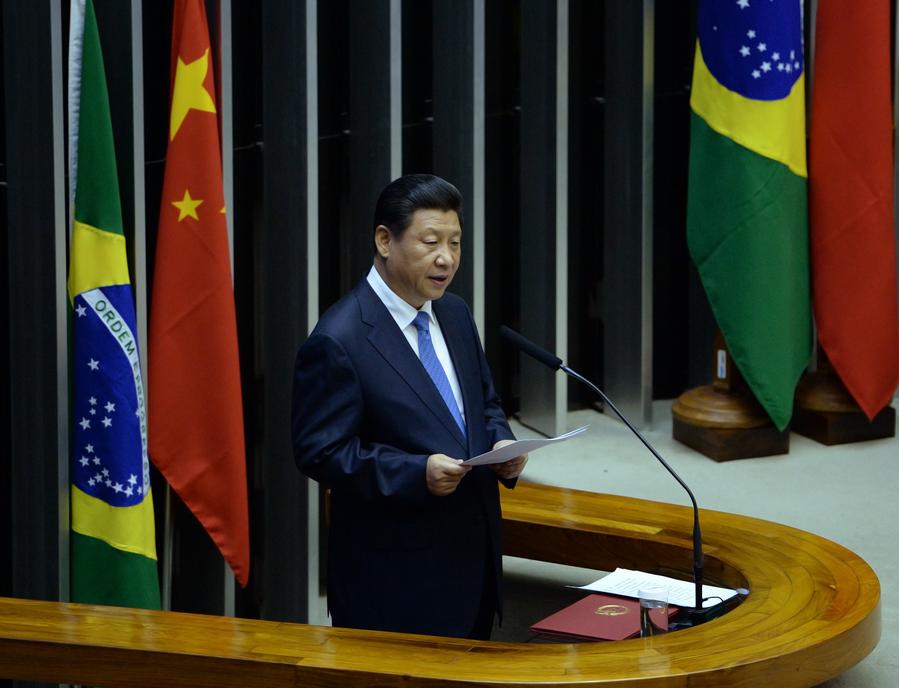 Chinese President Xi Jinping delivers a speech at the Brazilian National Congress in Brasilia, Brazil, July 16, 2014. (Xinhua/Liu Jiansheng)