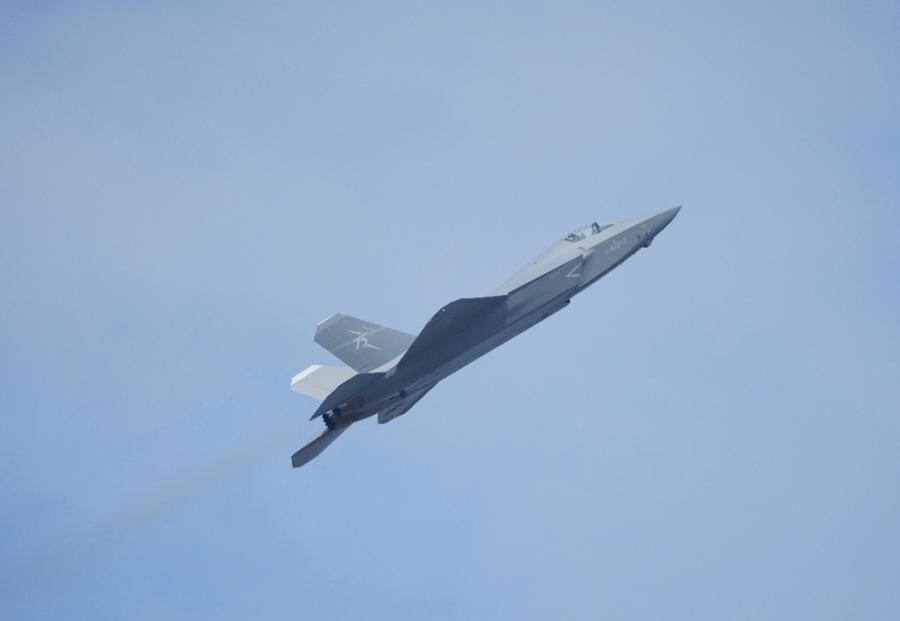 A J-35A fighter jet conducts adaptive training for the upcoming 15th Airshow China in Zhuhai, south China's Guangdong Province, Nov. 9, 2024. (Photo by Tan Sicheng/Xinhua)
