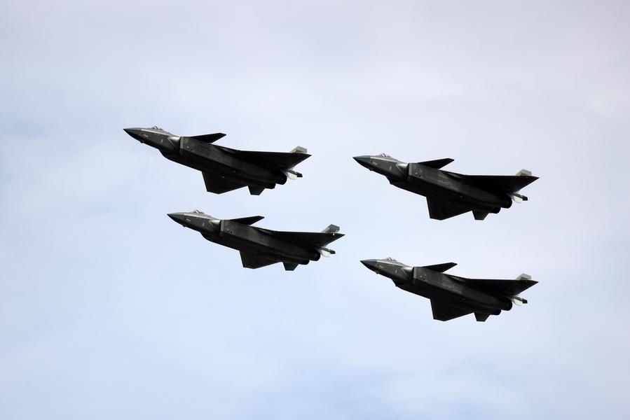J-20 stealth fighter jets conduct adaptive training for the upcoming 15th Airshow China in Zhuhai, south China's Guangdong Province, Nov. 9, 2024. (Photo by Tan Sicheng/Xinhua)