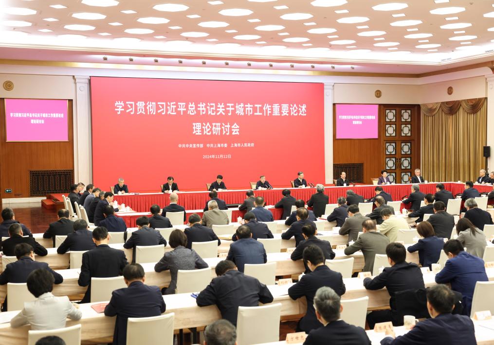 A seminar on the study and implementation of the important remarks that Xi Jinping, general secretary of the Communist Party of China (CPC) Central Committee, has made about work related to urban development and governance is held in east China's Shanghai on Nov. 12, 2024. Li Shulei, head of the Publicity Department of the CPC Central Committee, and Chen Jining, secretary of the Shanghai Municipal Committee of the CPC, attended and addressed the seminar. Both Li and Chen are members of the Political Bureau of the CPC Central Committee. (Xinhua/Pang Xinglei)