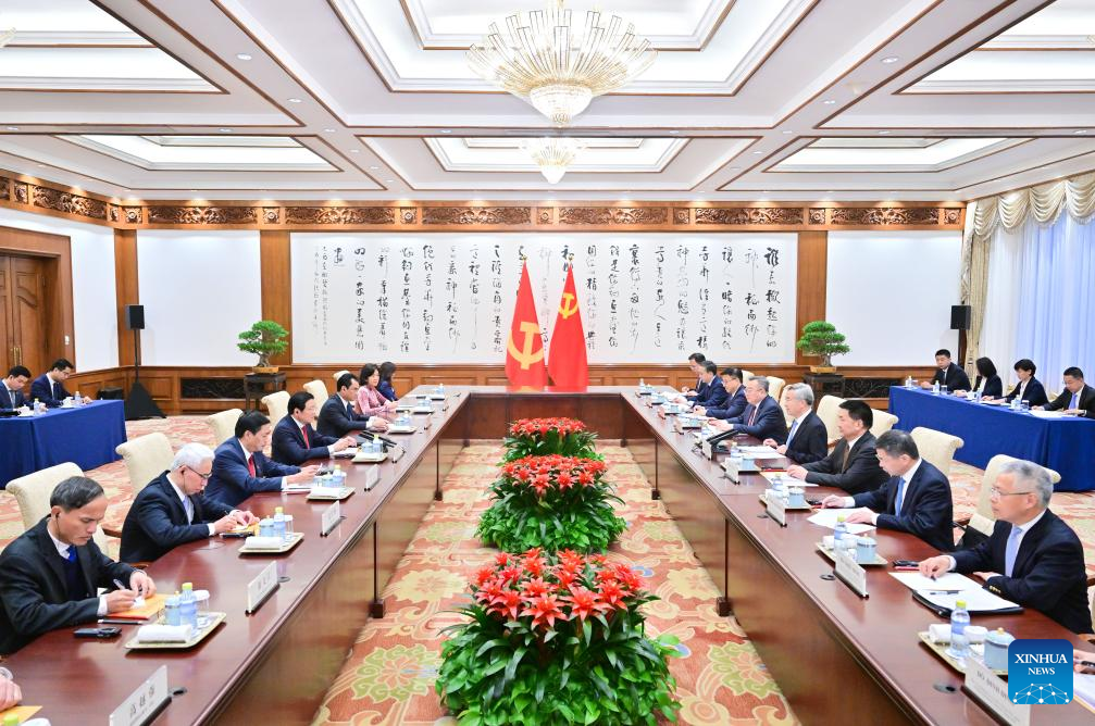 BEIJING, Nov. 12 (Xinhua) -- Senior Chinese official Li Xi met with a delegation led by Phan Dinh Trac, a member of the Political Bureau, secretary of the Secretariat and chairman of the Commission for Internal Affairs of the Communist Party of Vietnam (CPV) Central Committee, here on Tuesday.