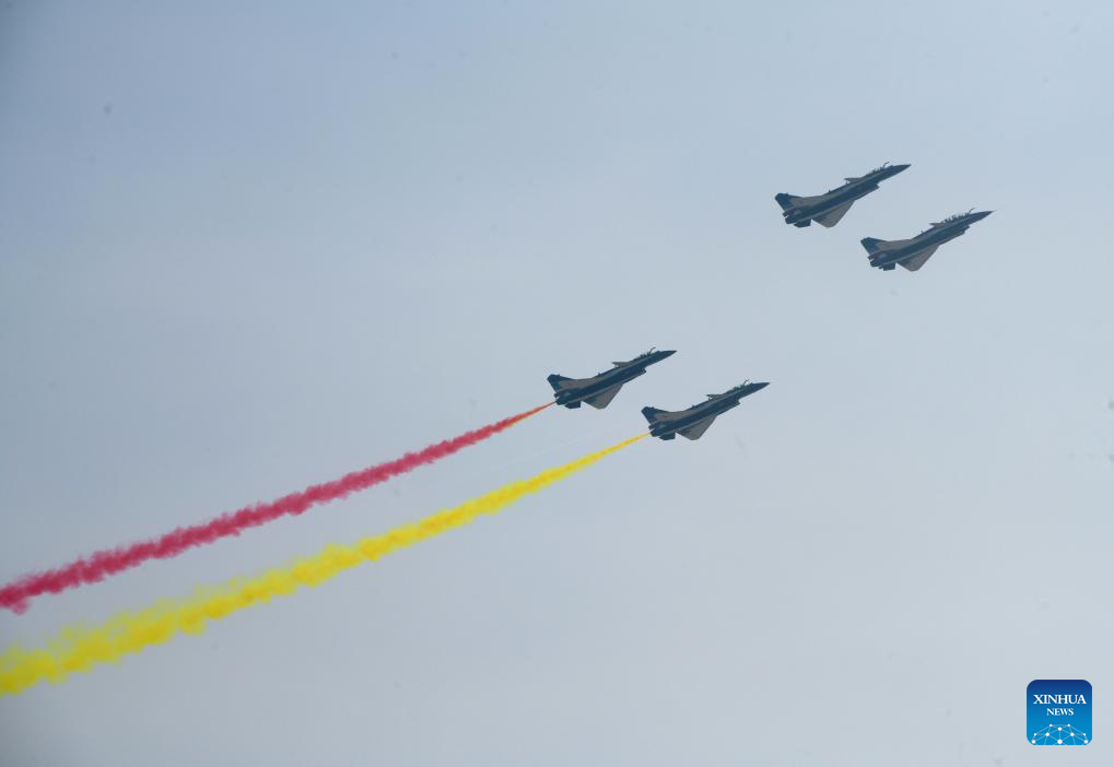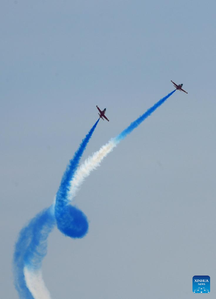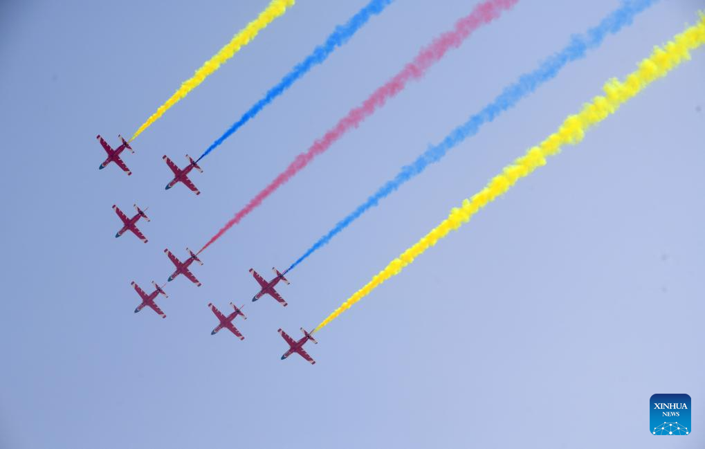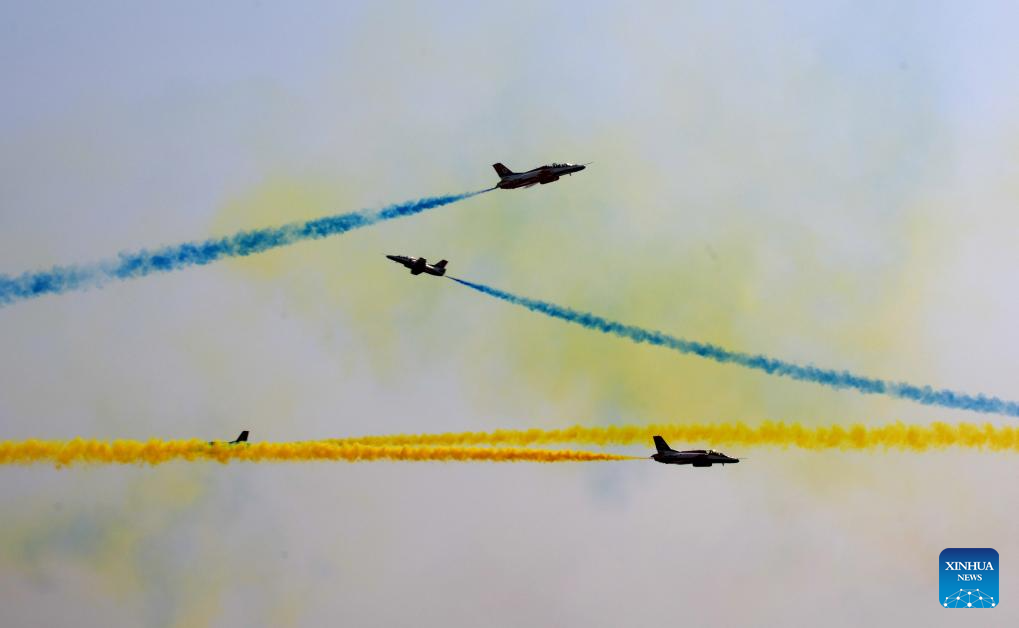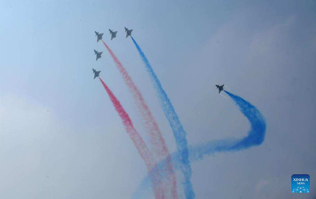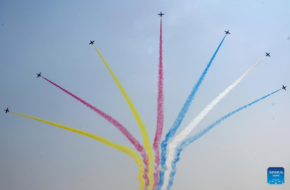 Aircraft of the Bayi Aerobatic Team of the Chinese People's Liberation Army Air Force stage a performance during Airshow China in Zhuhai, south China's Guangdong Province, Nov. 12, 2024. The 15th China International Aviation and Aerospace Exhibition, also known as Airshow China, kicked off in Zhuhai on Tuesday. (Xinhua/Lu Hanxin)