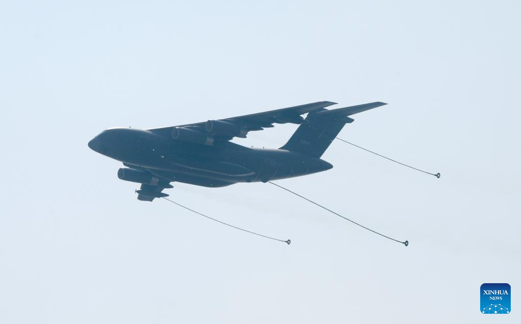 A YU-20 tanker aircraft is pictured during Airshow China in Zhuhai, south China's Guangdong Province, Nov. 12, 2024. The 15th China International Aviation and Aerospace Exhibition, also known as Airshow China, kicked off in Zhuhai on Tuesday. (Xinhua/Lu Hanxin)