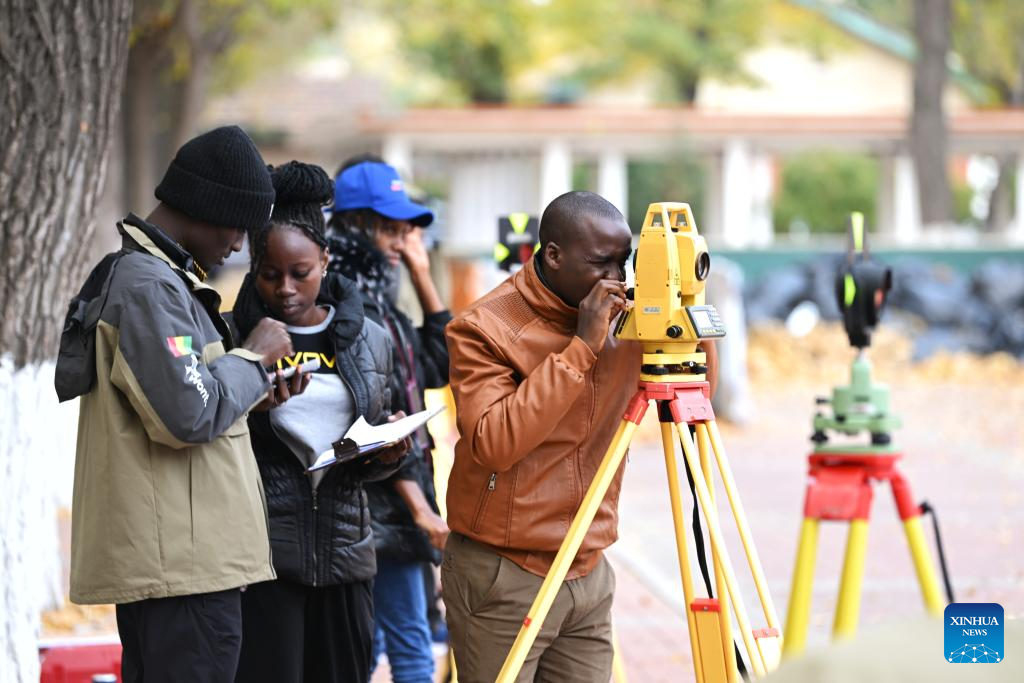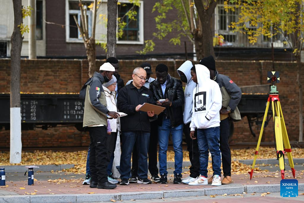 Trainees from Guinea use measuring instrument at Tianjin Railway Technical and Vocational College in north China's Tianjin, Nov. 11, 2024.