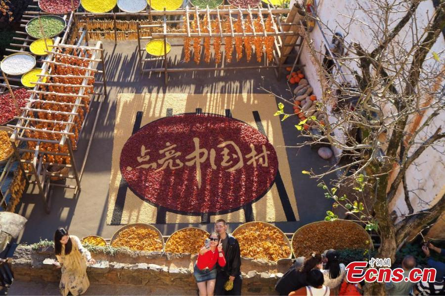 Shaiqiu, or "drying crops in autumn sunshine", attracts visitors to Huangling Village, Wuyuan County, east China's Jiangxi Province, Nov. 11, 2024. (Photo: China News Service/Liu Zhankun)