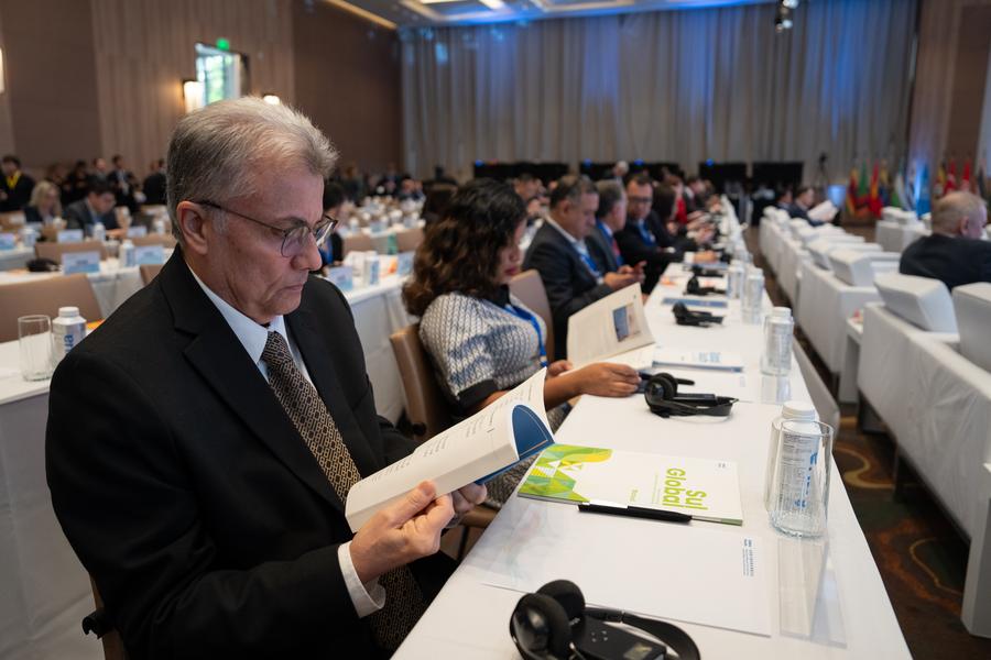 Attendees read think tank report "A New Model for Human Advancement and Its Global Significance" during the Global South Media and Think Tank Forum in Sao Paulo, Brazil, Nov. 11, 2024. (Xinhua/Wang Tiancong)
