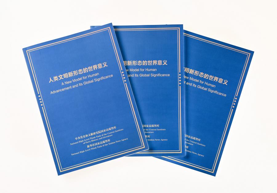 This photo shows the think tank report "A New Model for Human Advancement and Its Global Significance" released during the Global South Media and Think Tank Forum in Sao Paulo, Brazil. (Xinhua/Li He)
