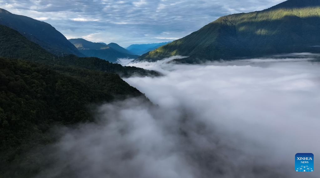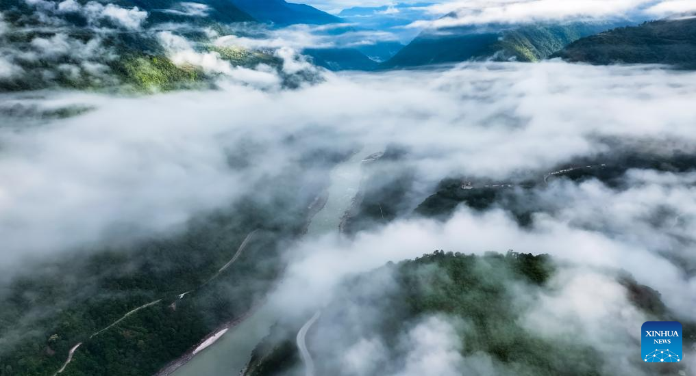 An aerial drone photo taken on Nov. 11, 2024 shows the sea of clouds in Medog County, southwest China's Xizang Autonomous Region. Medog sits at an average altitude of 1,200 meters, with a humid climate and abundant rainfall. It is located in a deep valley in the Himalayas, besieged by high hills and primitive forests. (Xinhua/Purbu Tsering)