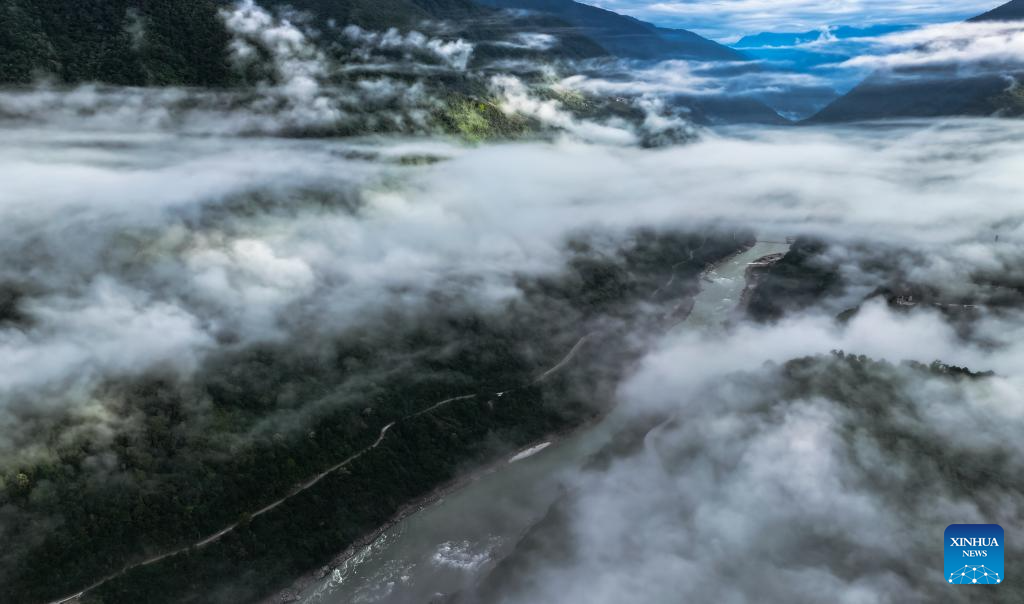 An aerial drone photo taken on Nov. 11, 2024 shows the sea of clouds in Medog County, southwest China's Xizang Autonomous Region. Medog sits at an average altitude of 1,200 meters, with a humid climate and abundant rainfall. It is located in a deep valley in the Himalayas, besieged by high hills and primitive forests. (Xinhua/Kelsang Namgyai)