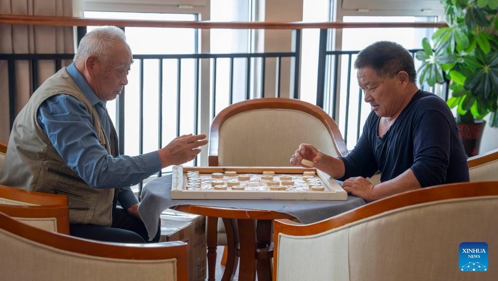 Senior residents play chess at an elderly care center in Rizhao, east China's Shandong Province, Nov. 11, 2024. The city of Rizhao has in recent years been committed to enhancing elderly care services that integrate medical, fitness, and daily care through at-home and community-based facilities. (Xinhua/Cai Yang)