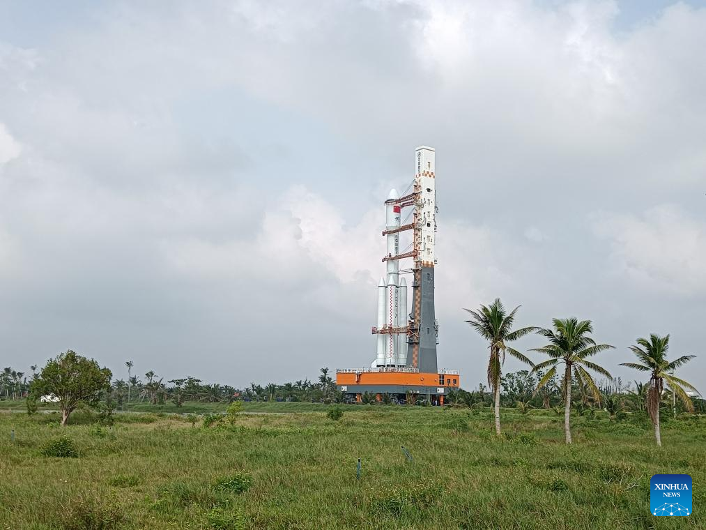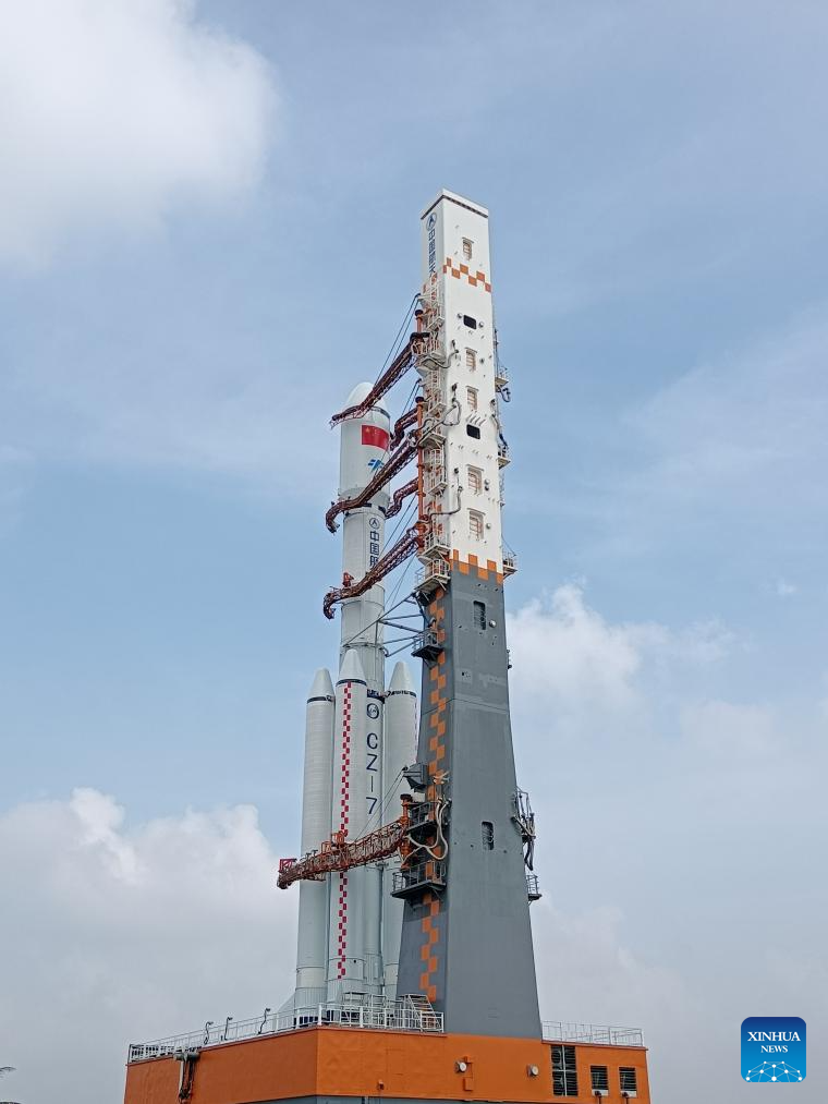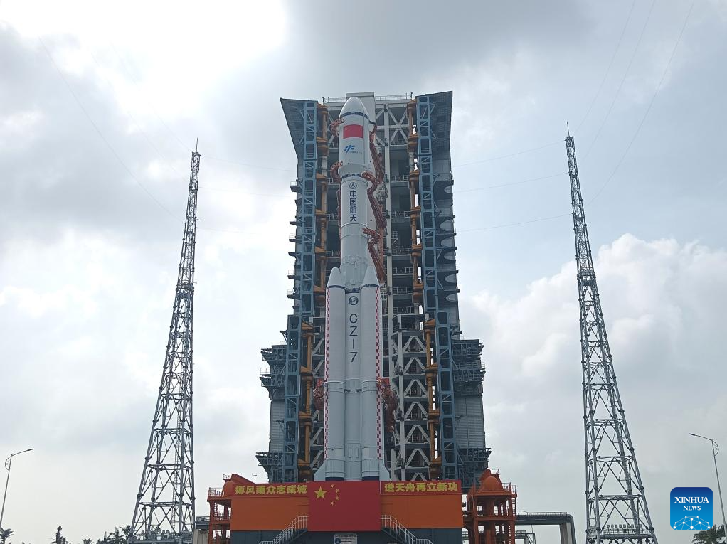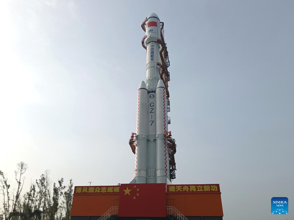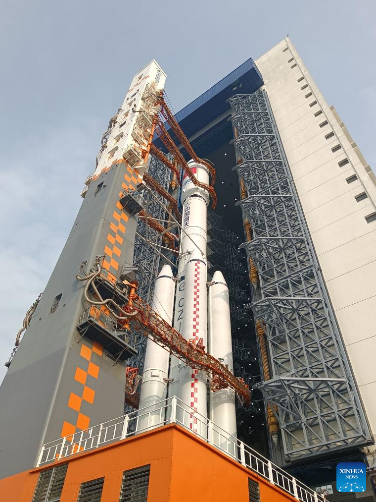 The combination of the Tianzhou-8 cargo spacecraft and a Long March-7 Y9 carrier rocket was vertically transferred to the launching area on Wednesday.