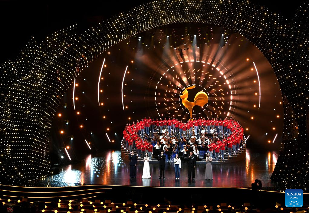 This photo taken on Nov. 13, 2024 shows the opening ceremony of the 2024 China Golden Rooster and Hundred Flowers Film Festival in Xiamen, southeast China's Fujian Province. The 2024 China Golden Rooster and Hundred Flowers Film Festival, which features China's top film awards ceremony, opened on Wednesday in the city of Xiamen, east China's Fujian Province. (Xinhua/Wei Peiquan)