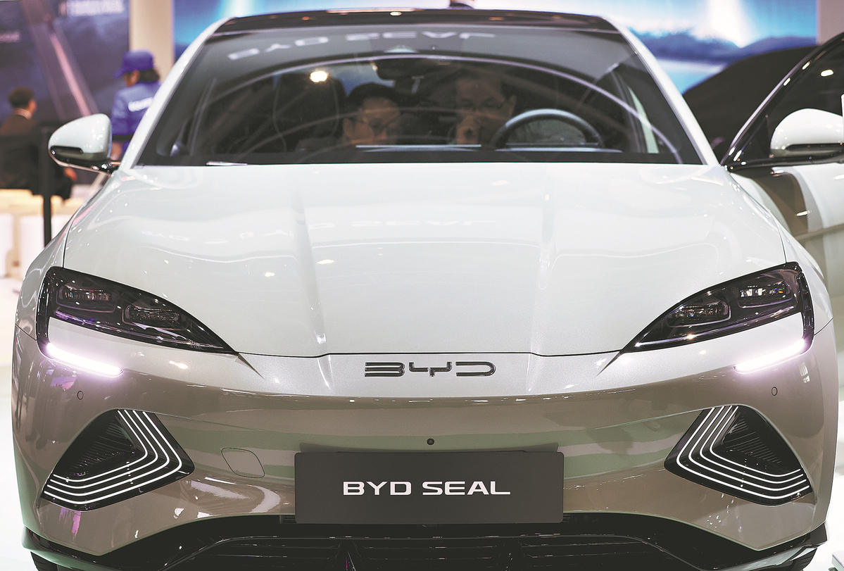 A BYD vehicle on display during a recent auto expo in Paris, France. (GAO JING/XINHUA)