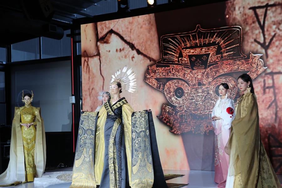 Models showcase Chinese traditional costumes at a tourism promotion event for east China's Zhejiang Province in New York City, the United States, on Nov. 13, 2024. (Xinhua/Liu Yanan)