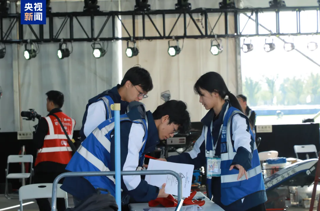 Gu Huijing (first from right), a post-00s Chinese girl who is widely known by Chinese netizens as "auto repair girl," takes part in the finals of the 2024 Formula Student Electric China (FSEC), a race car design competition aimed at facilitating the cultivation of young talents for China's automobile industry. The competition brought together 82 teams from China, Germany, and Singapore. (Photo/CCTV News)