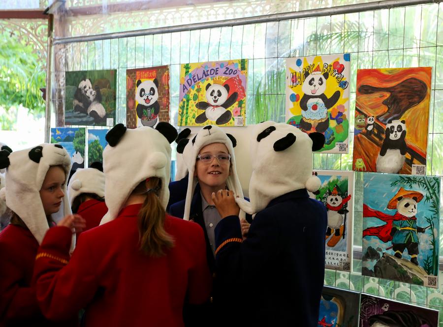 Children attend a farewell reception for giant pandas Wang Wang and Fu Ni in Adelaide, Australia, Nov. 14, 2024. (Xinhua/Ma Ping)