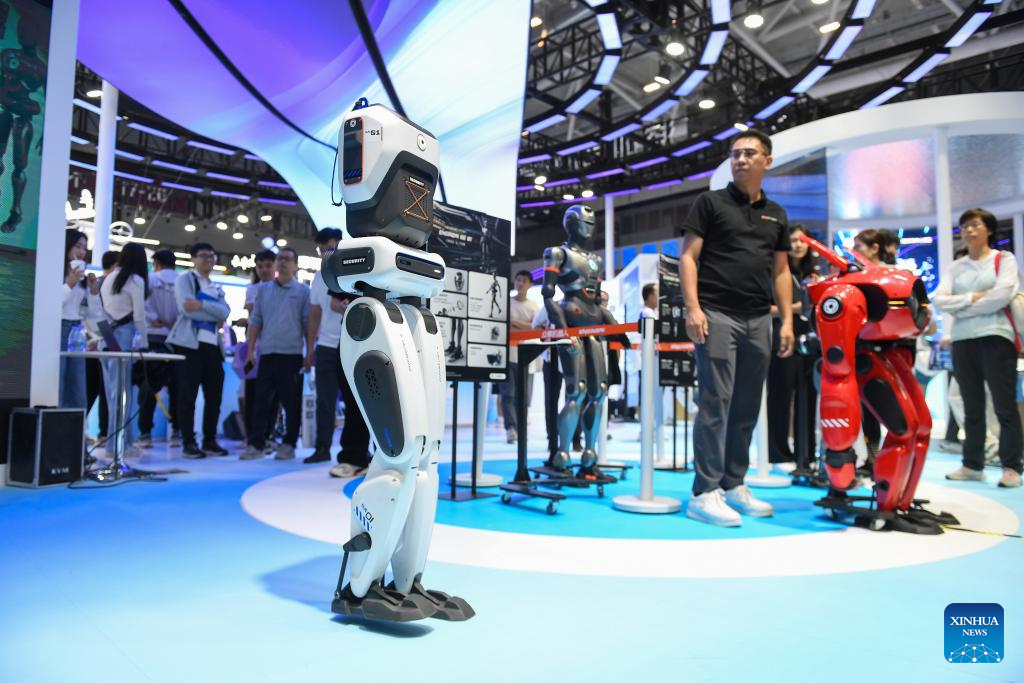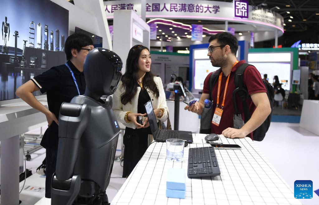 Visitors learn about a humanoid robot at a booth at the 26th China High-Tech Fair (CHTF) in Shenzhen, south China's Guangdong Province, Nov. 14, 2024. A variety of robots and products of related industries are exhibited at the ongoing 26th CHTF, attracting lots of attention. (Xinhua/Mao Siqian)