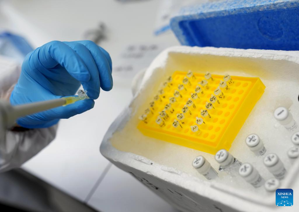 Wang He works in a laboratory of Shanghai Ocean University in east China's Shanghai, Nov. 14, 2024. (Xinhua/Liu Ying)