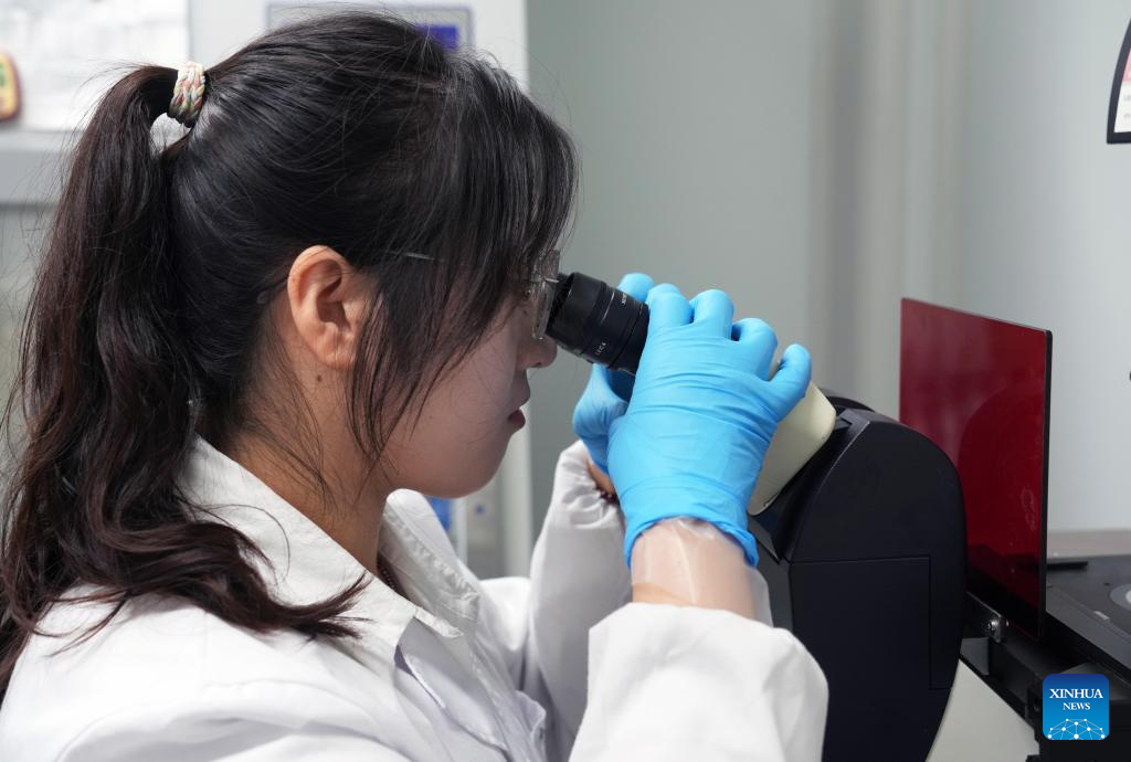 Wang He works in a laboratory of Shanghai Ocean University in east China's Shanghai, Nov. 14, 2024. (Xinhua/Dai Qiaochu)