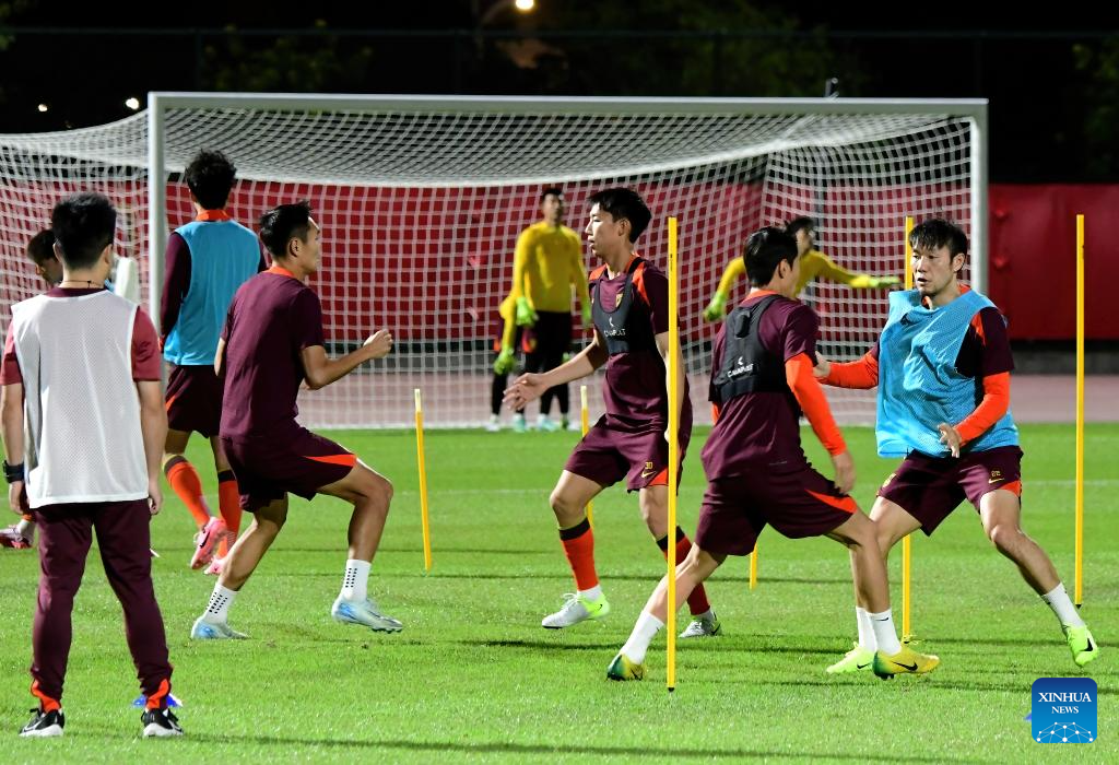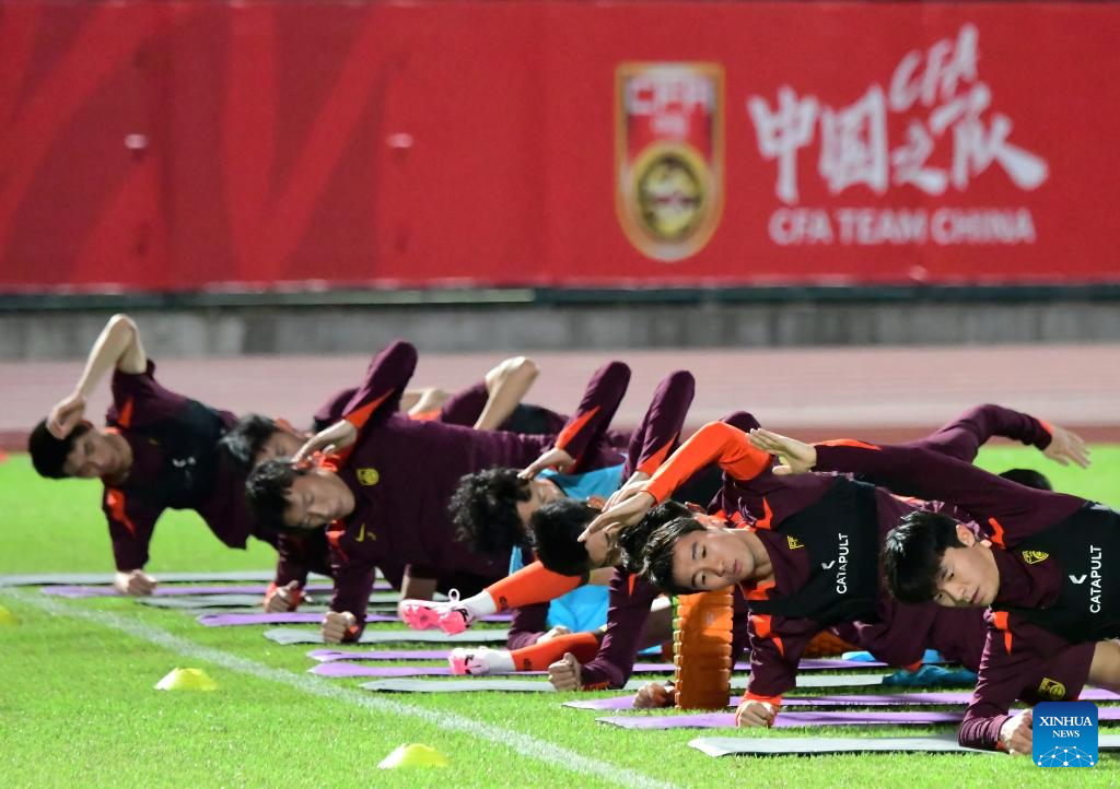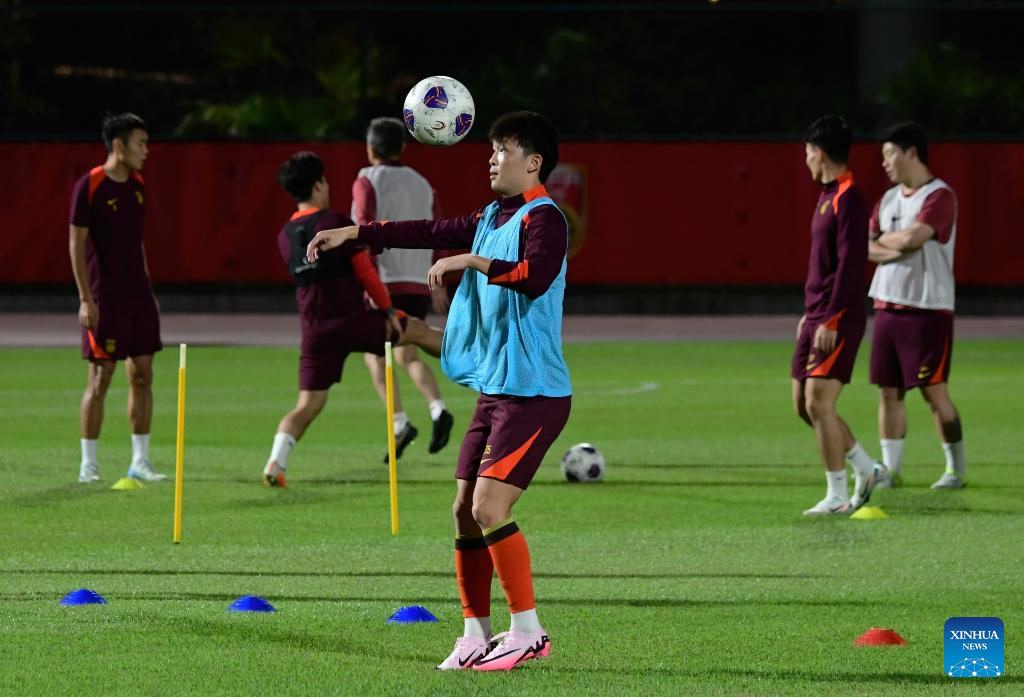 Players of the Chinese national men's football team attend a training session for the upcoming 2026 FIFA World Cup Asian Qualifiers match between China and Japan in Xiamen, east China's Fujian Province, Nov. 17, 2024. (Xinhua/Wei Peiquan)