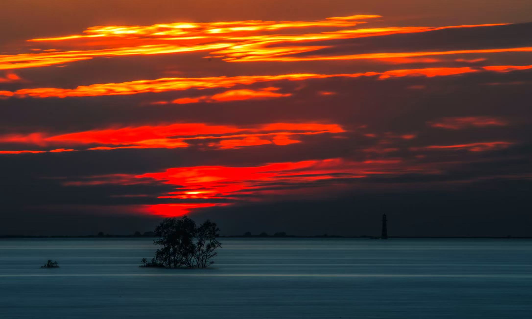 This photo captures the sunset over Dongting Lake. (Photo/Tang Xiaohua)