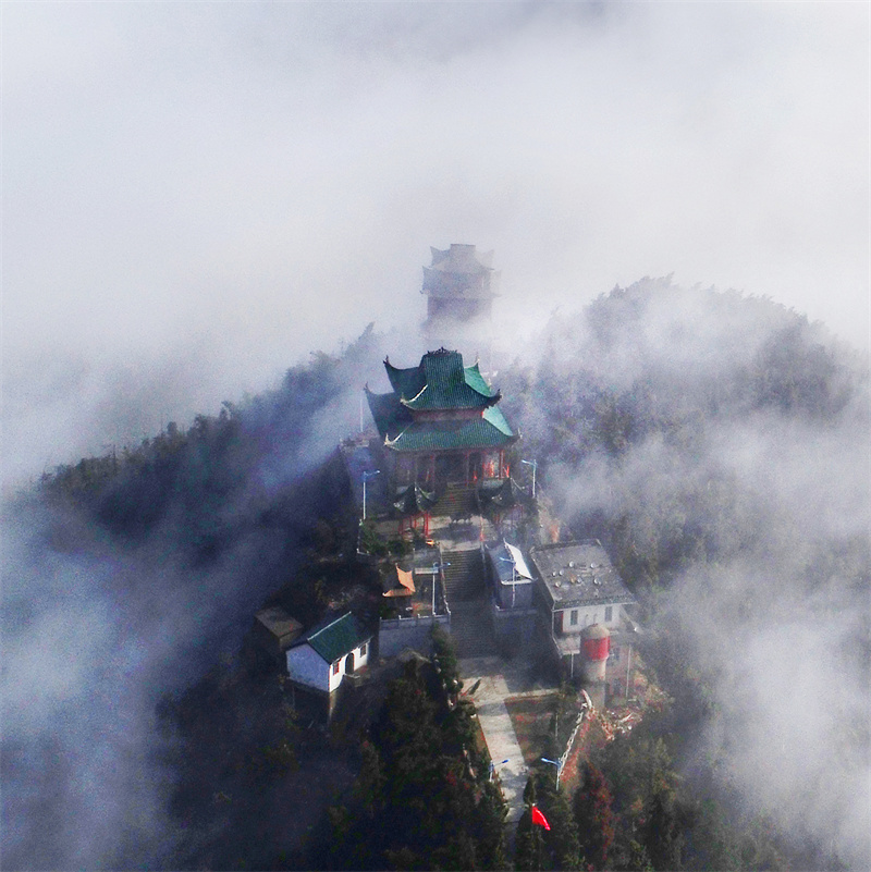 Dayun Mountain is often wrapped in mist during autumn. At dawn, clouds rise from the valleys like white ribbons, draping the mountains in a scene reminiscent of a fairyland.