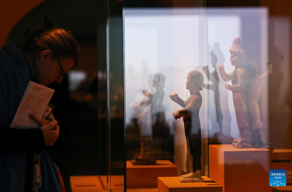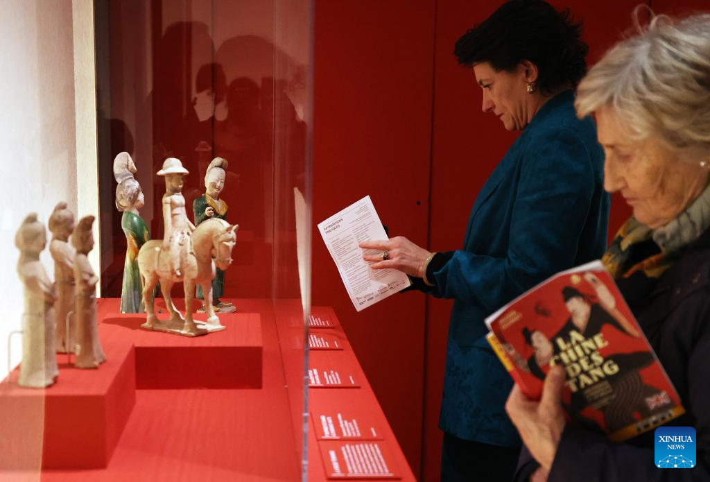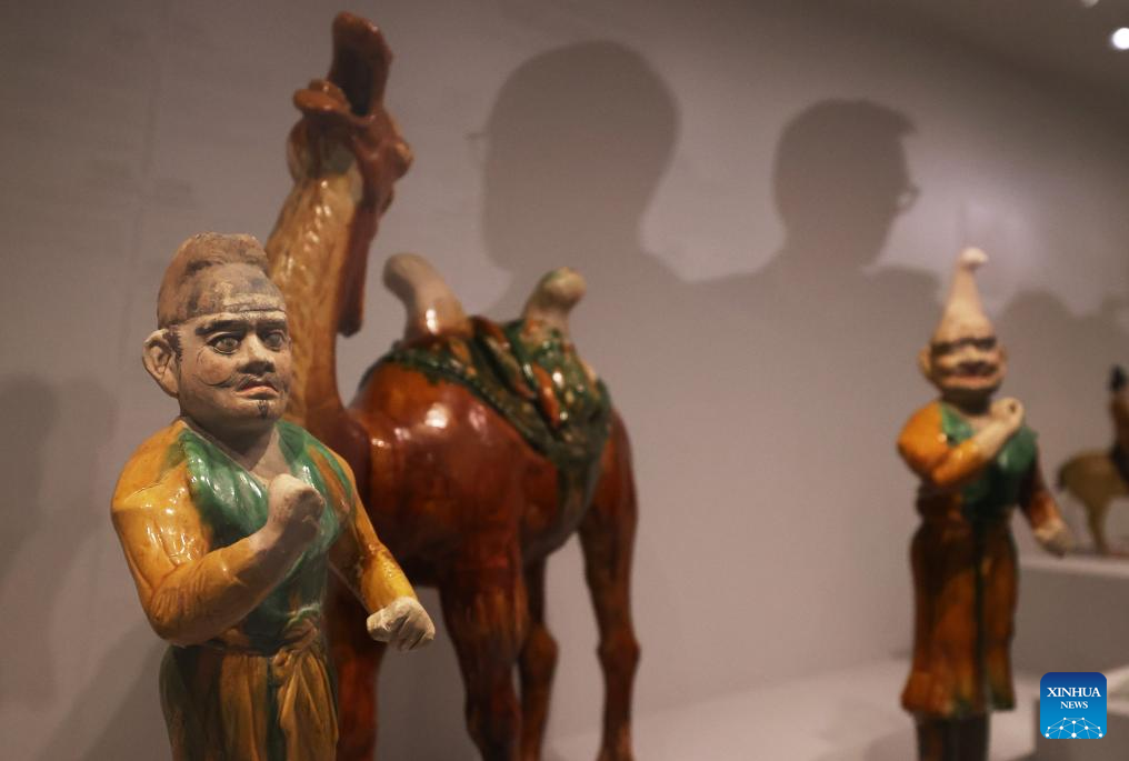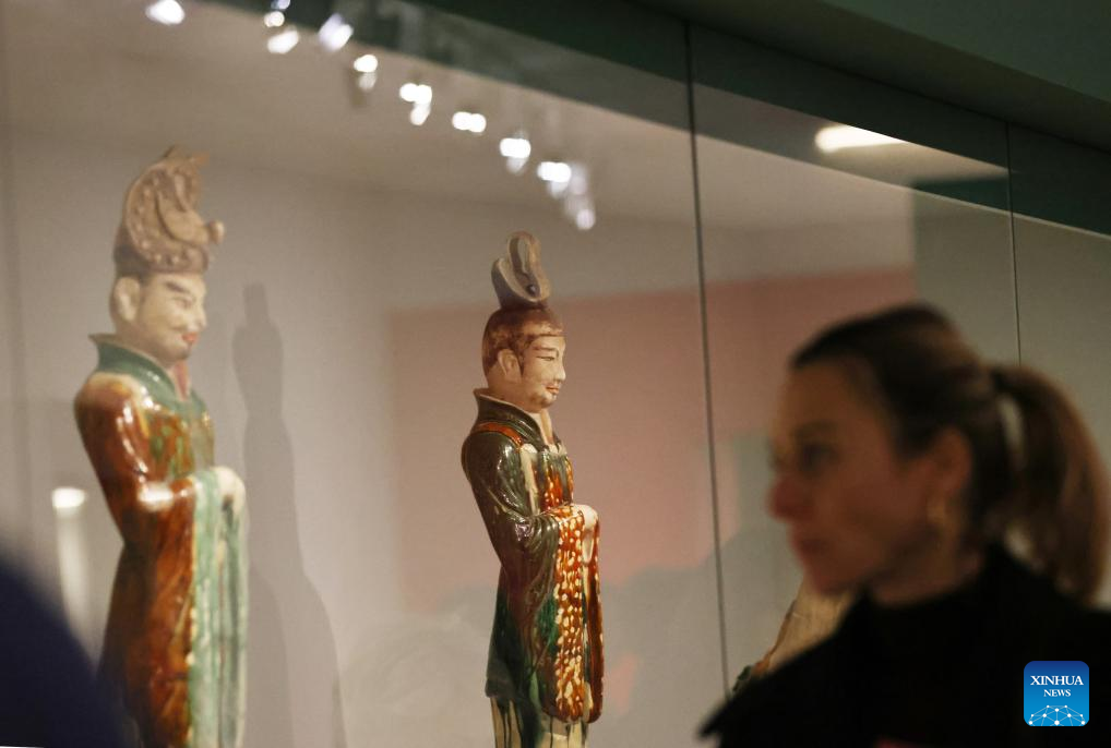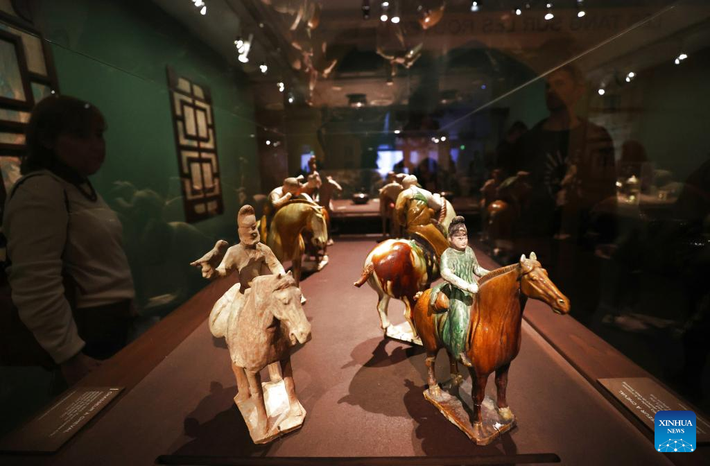 This photo taken on Nov. 18, 2024 shows exhibits at an exhibition titled "Tang China -- A Cosmopolitan Dynasty (7th-10th Century)" at the Guimet National Museum of Asian Arts in Paris, France. The exhibition was inaugurated Monday at France's Guimet National Museum of Asian Arts.