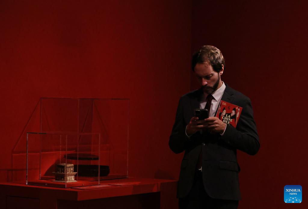 The exhibition, directed by China's National Cultural Heritage Administration and the French Ministry of Culture, showcases over 200 pieces or sets of exquisite artifacts from 32 cultural and museum institutions in 10 provincial-level regions and cities in China. (Xinhua/Gao Jing)