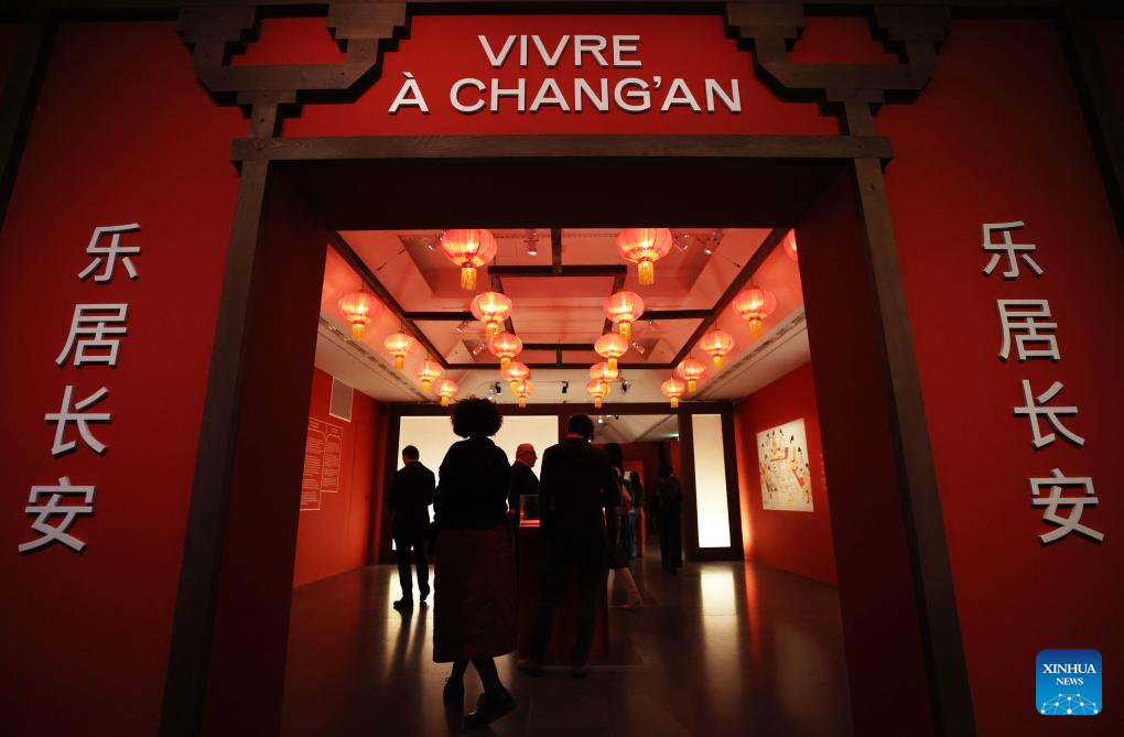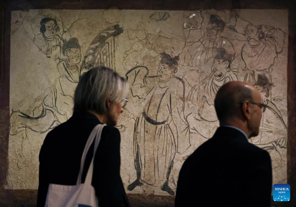 People visit an exhibition titled "Tang China -- A Cosmopolitan Dynasty (7th-10th Century)" at the Guimet National Museum of Asian Arts in Paris, France, Nov. 18, 2024. The exhibition was inaugurated Monday at France's Guimet National Museum of Asian Arts.