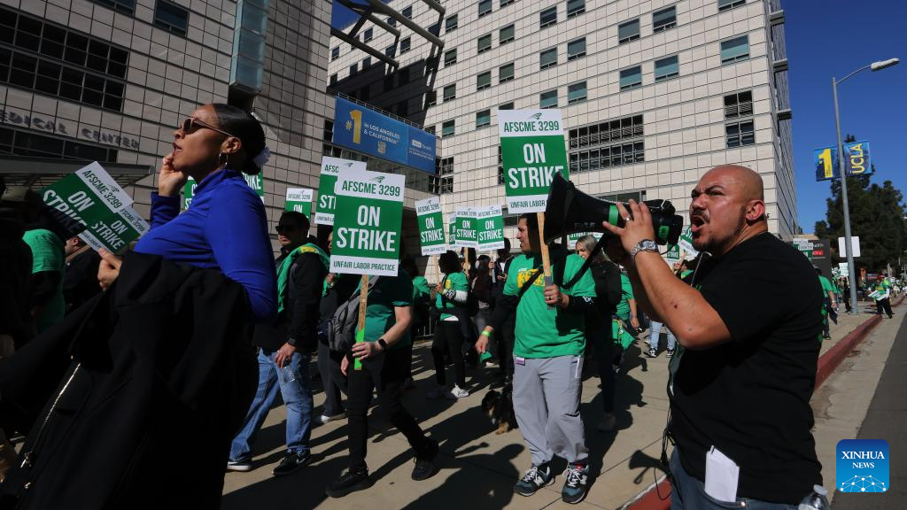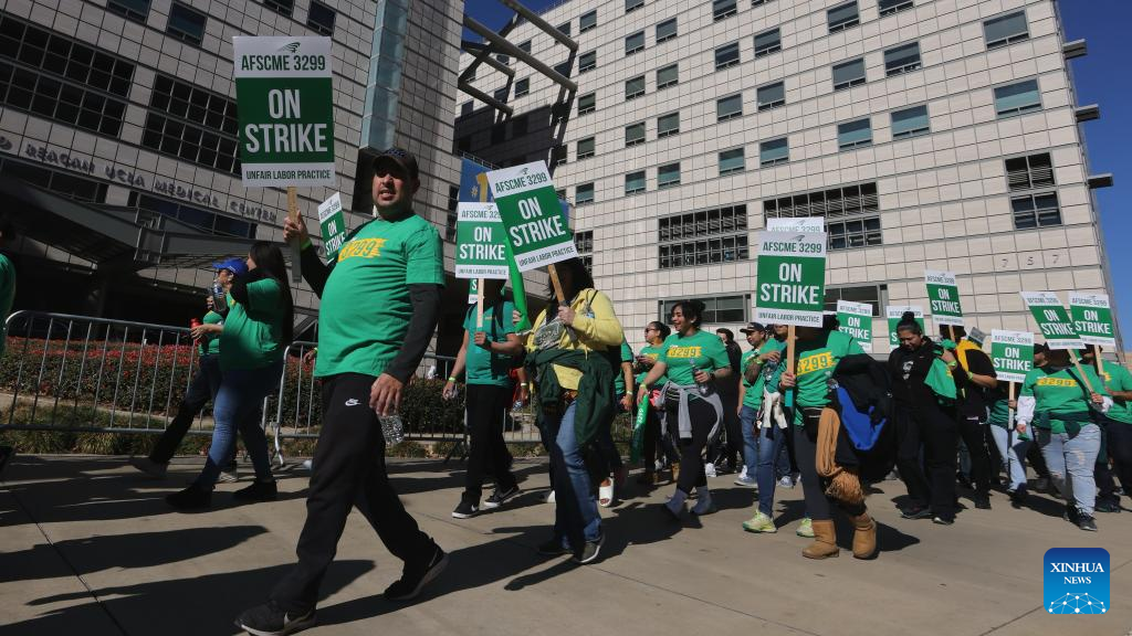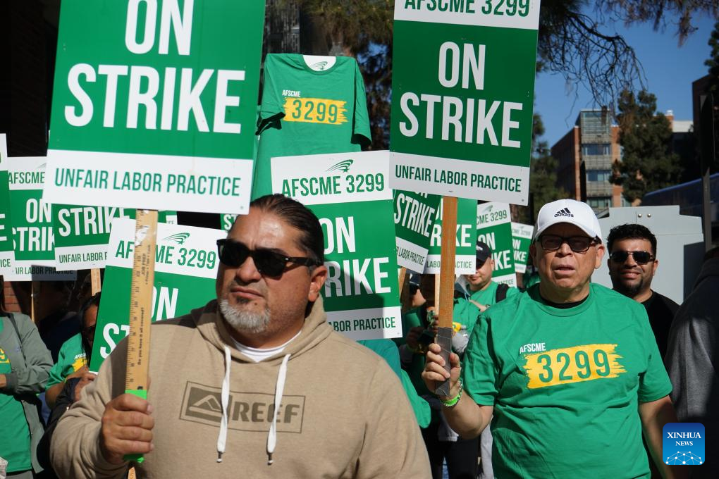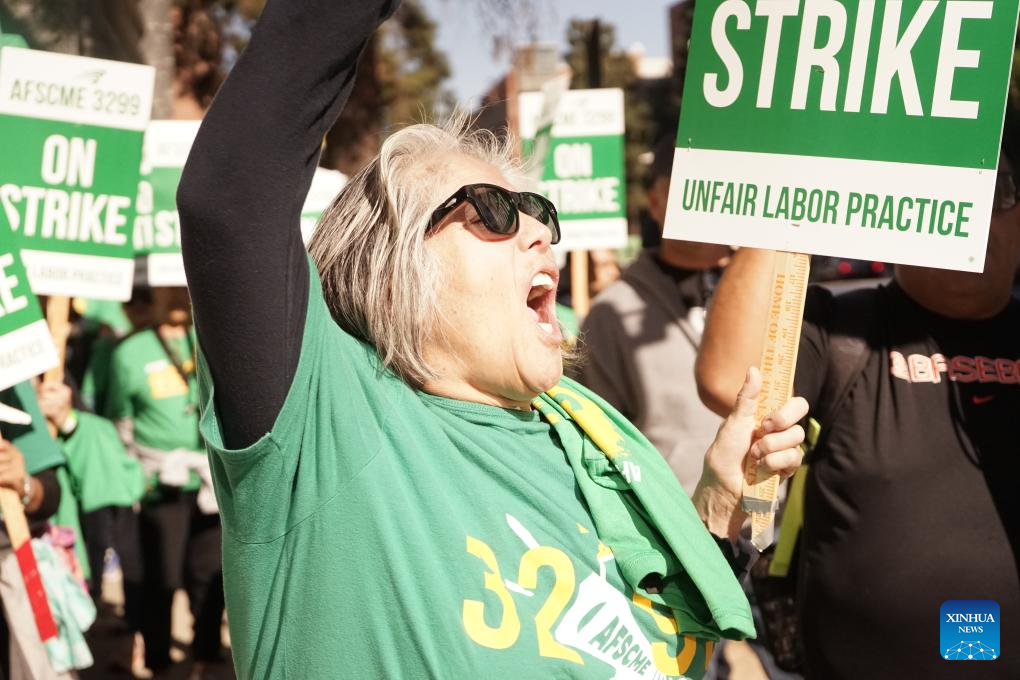 LOS ANGELES, Nov. 20 (Xinhua) -- Nearly 40,000 healthcare workers at University of California (UC), a top public university system in the United States, kicked off a two-day strike on Wednesday morning.