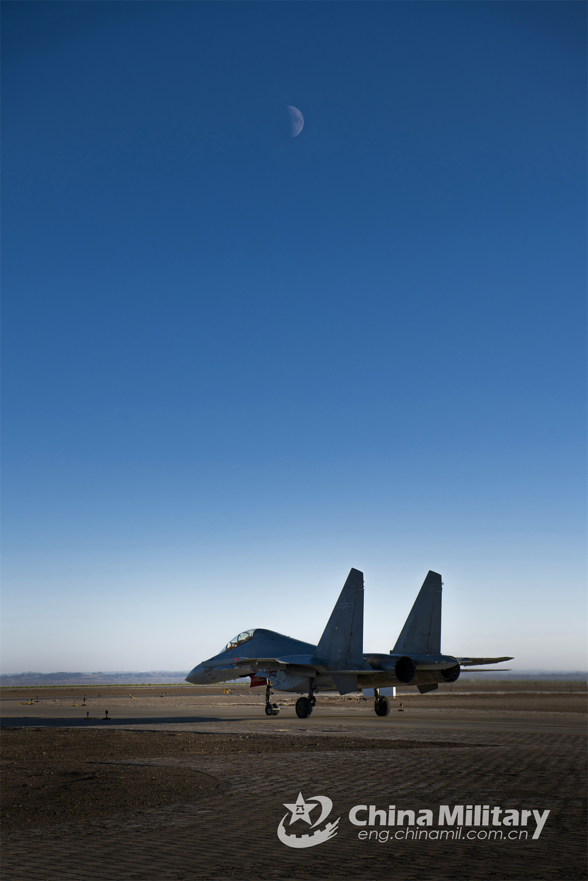 A J-16 multi-role fighter jet attached to an aviation regiment under the Chinese PLA Air Force taxis on the flightline during a round-the-clock flight training exercise on October 10th, 2024. (eng.chinamil.com.cn/Photo by Xu Chengcheng)