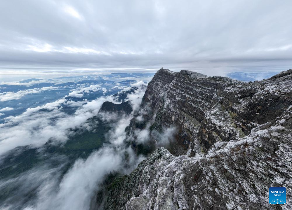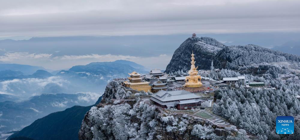 A drone photo taken on Nov. 20, 2024 shows a view on the summit of Mount Emei, or Jinding in Chinese, in southwest China's Sichuan Province. (Xinhua/Jiang Hongjing)