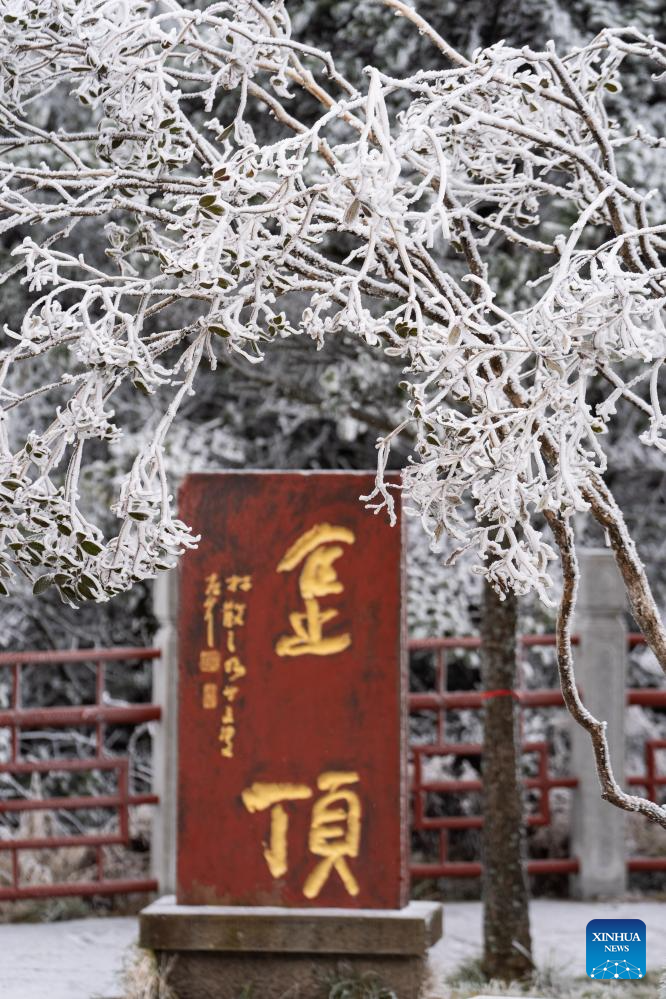 This photo taken on Nov. 20, 2024 shows a view on the summit of Mount Emei, or Jinding in Chinese, in southwest China's Sichuan Province. (Xinhua/Jiang Hongjing)