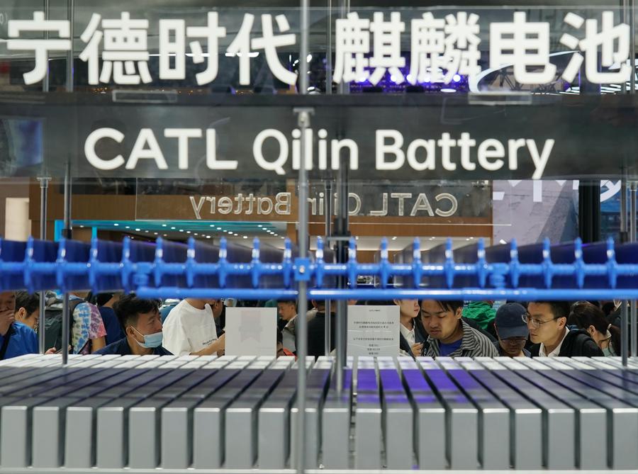 People visit the booth of CATL at the 2024 Beijing International Automotive Exhibition in Beijing, China, April 30, 2024. (Xinhua/Zhang Chenlin)