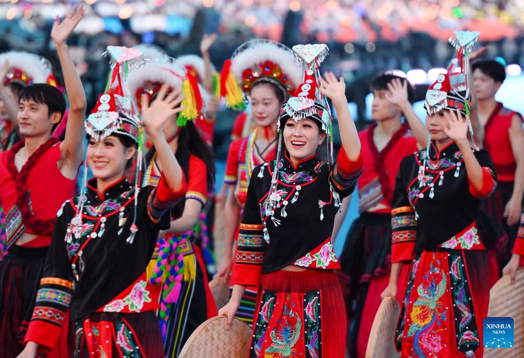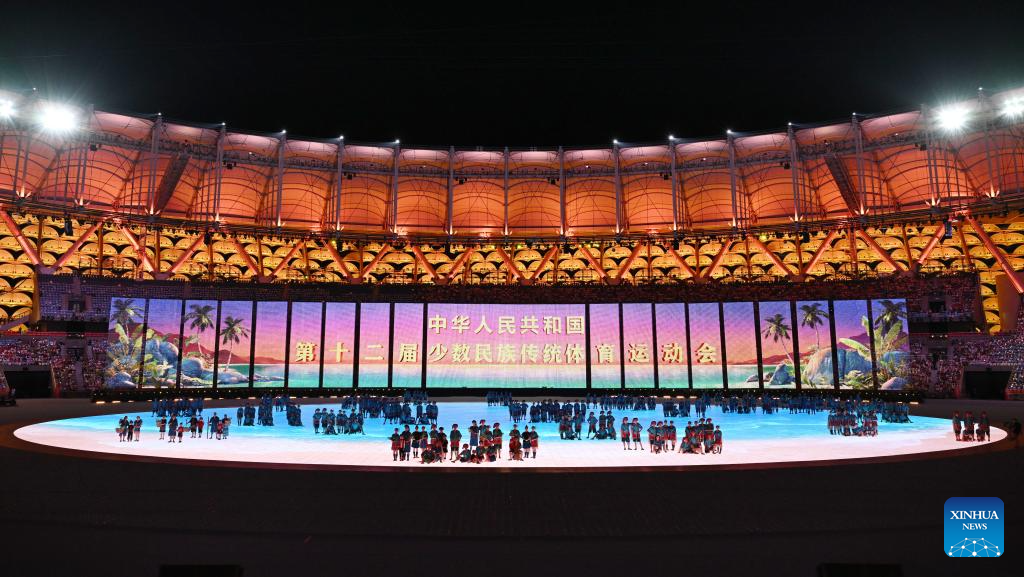 Artists perform during the opening ceremony of the 12th National Traditional Games of Ethnic Minorities of the People's Republic of China in Sanya, south China's Hainan Province, Nov. 22, 2024. (Xinhua/Yang Guanyu)