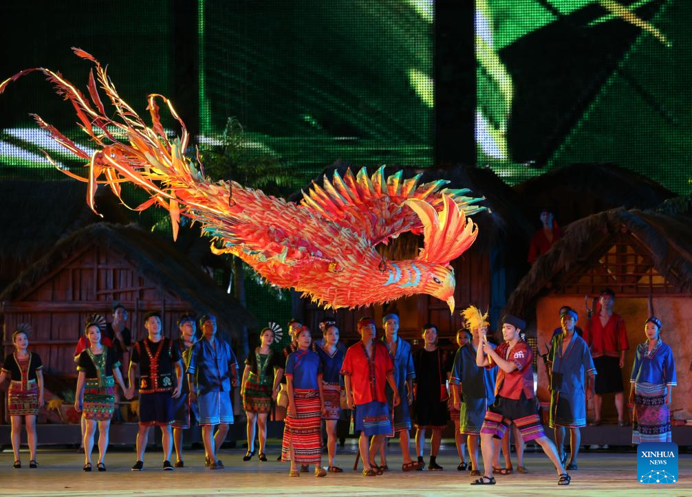 Artists perform during the opening ceremony of the 12th National Traditional Games of Ethnic Minorities of the People's Republic of China in Sanya, south China's Hainan Province, Nov. 22, 2024. (Xinhua/Sun Fanyue)