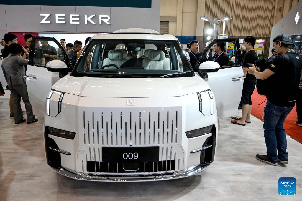 Visitors view a vehicle displayed at the booth of Chinese auto brand Zeeker during opening of Gaikindo Jakarta Auto Week (GJAW) 2024 in Tangerang, Banten Province, Indonesia, Nov. 22, 2024. The auto show is held here from Nov. 22 to Dec. 1. (Xinhua/Agung Kuncahya B.)
