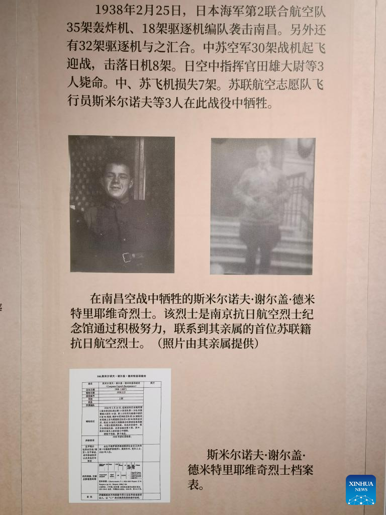 This photo taken on Nov. 22, 2024 shows the portraits and file information of a Soviet Union aviation martyr newly secured by the Nanjing Anti-Japanese Aviation Martyrs Memorial Hall in Nanjing, east China's Jiangsu Province. China on Friday released a list of 236 Soviet Union aviation martyrs who gave their lives during the Chinese People's War of Resistance Against Japanese Aggression, according to the Nanjing Anti-Japanese Aviation Martyrs Memorial Hall in east China's Jiangsu Province.(Xinhua/Qiu Bingqing)