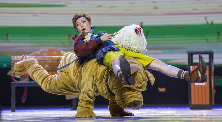 An actor performs during an acrobatic show in Beijing, capital of China, Nov. 23, 2024. (Xinhua/Cai Yang)