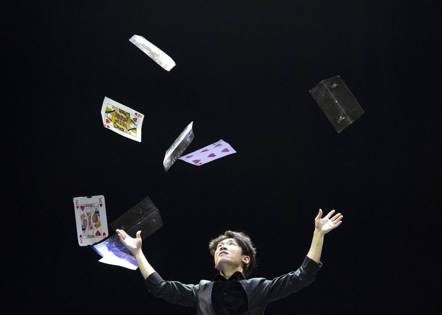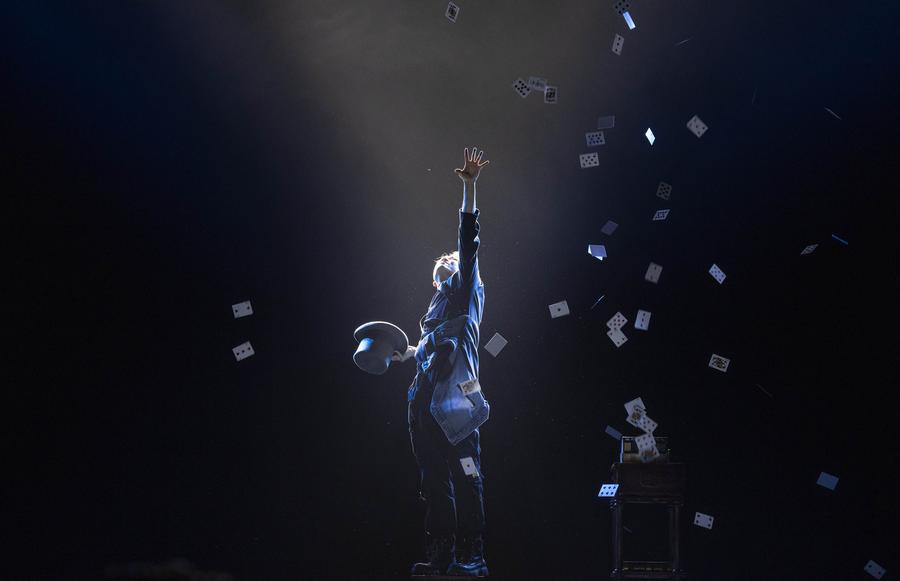 An actor performs magic tricks during an acrobatic show in Beijing, capital of China, Nov. 23, 2024. (Xinhua/Cai Yang)
