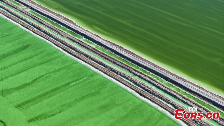 A giant "salt flower" emerges on the emerald-like Qarhan Salt Lake, China's largest salt lake, in Haixi Mongolian and Tibetan Autonomous Prefecture, northwest China's Qinghai Province, Nov. 22, 2024. (Photo: China News Service/Ma Mingyan)