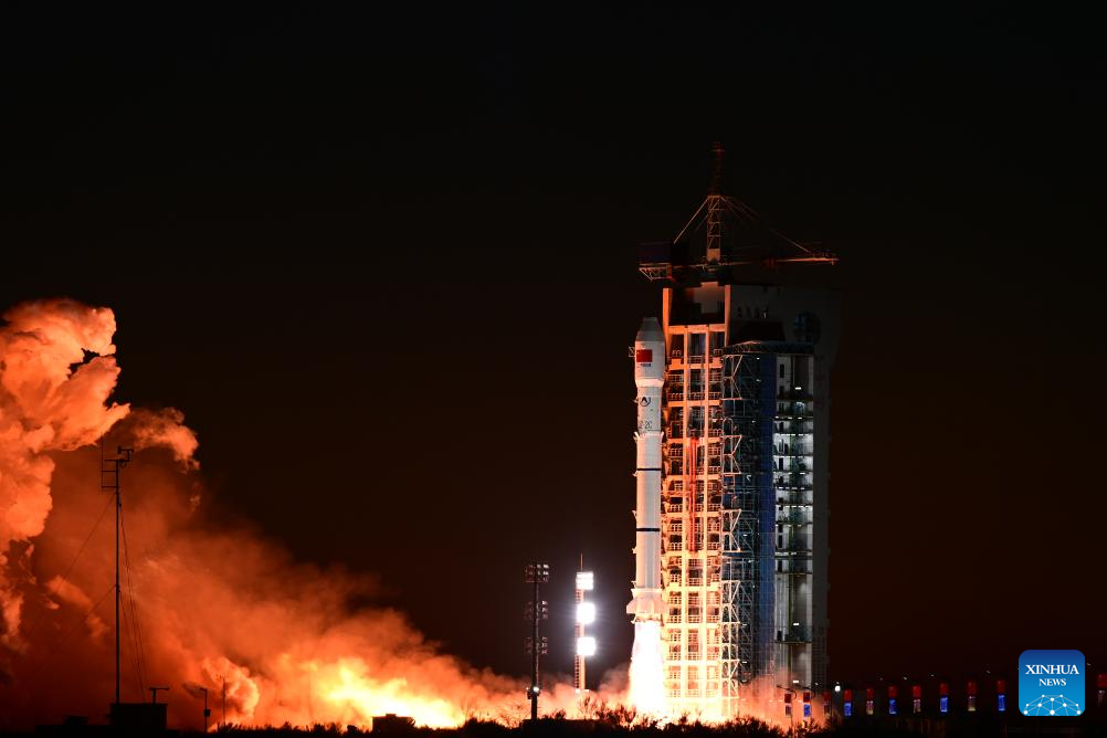 A Long March-2C carrier rocket carrying two satellites blasts off from the Jiuquan Satellite Launch Center in northwest China, Nov. 25, 2024. The rocket blasted off at 7:39 a.m. (Beijing Time) and sent the pair of satellites, Siwei Gaojing-2 03 and Siwei Gaojing-2 04, into the preset orbit. (Photo by Wang Jiangbo/Xinhua)