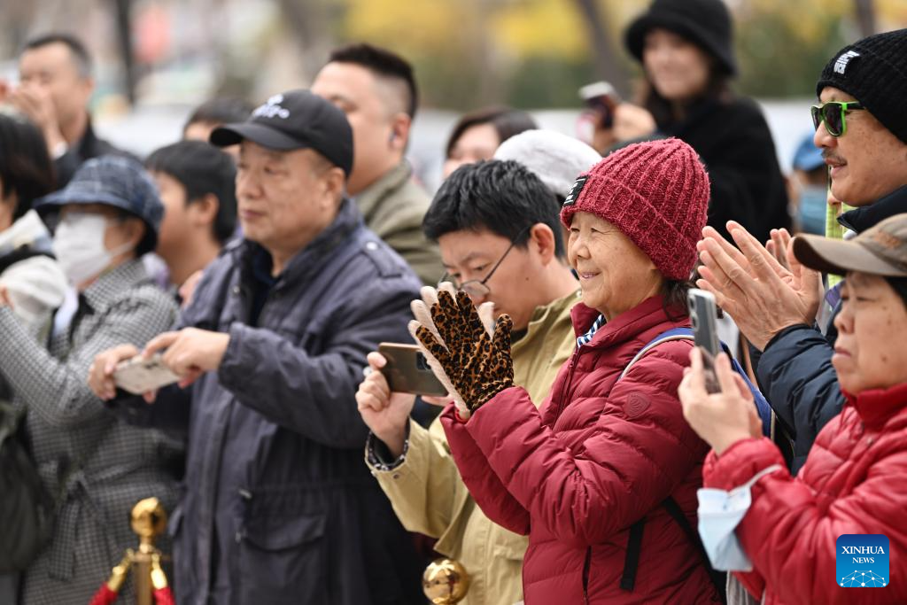 Audience watch drama "the Phoenix hair clip" staged in a street in Tianjin, north China, Nov. 24, 2024. "The Phoenix hair clip" is a poem of famous poet Lu You in China's Song Dynasty (960-1279), describing his real tragic love story that had been adapted by artists into many versions of dramas.
