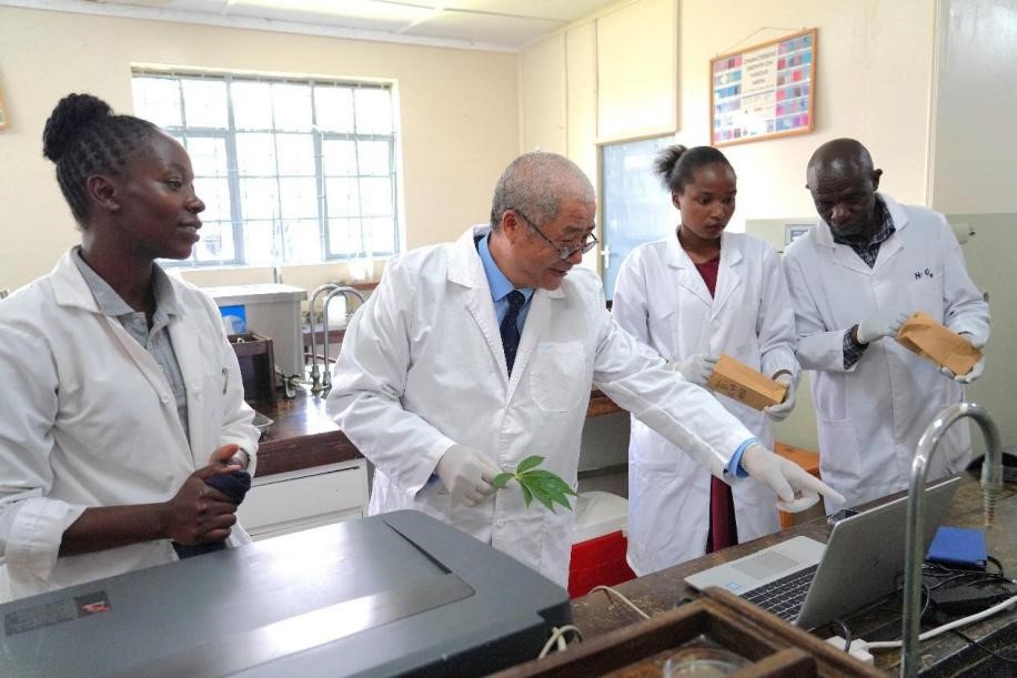 Chinese and foreign researchers work in the Kenya-China Joint Laboratory for Crop Molecular Biology at the Egerton University in Kenya. (People's Daily/Huang Weixin)