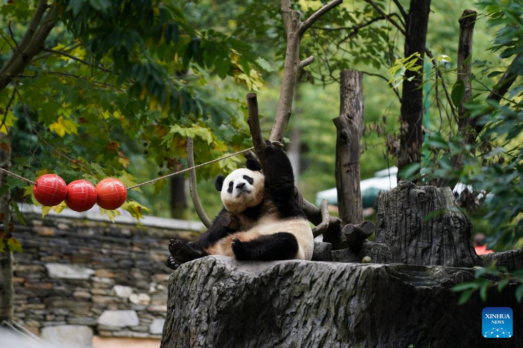 Giant panda Xiao Liwu is pictured at Jiawuhai Giant Panda Conservation and Research Park in Jiuzhaigou County, southwest China's Sichuan Province, Oct. 11, 2024. Xiao Liwu, male, was born at the San Diego Zoo in the United States on July 29, 2012. (Xinhua/Wang Xi)