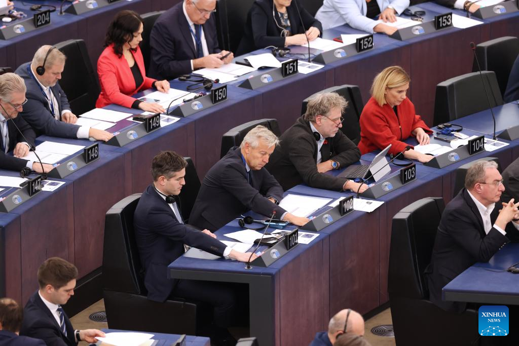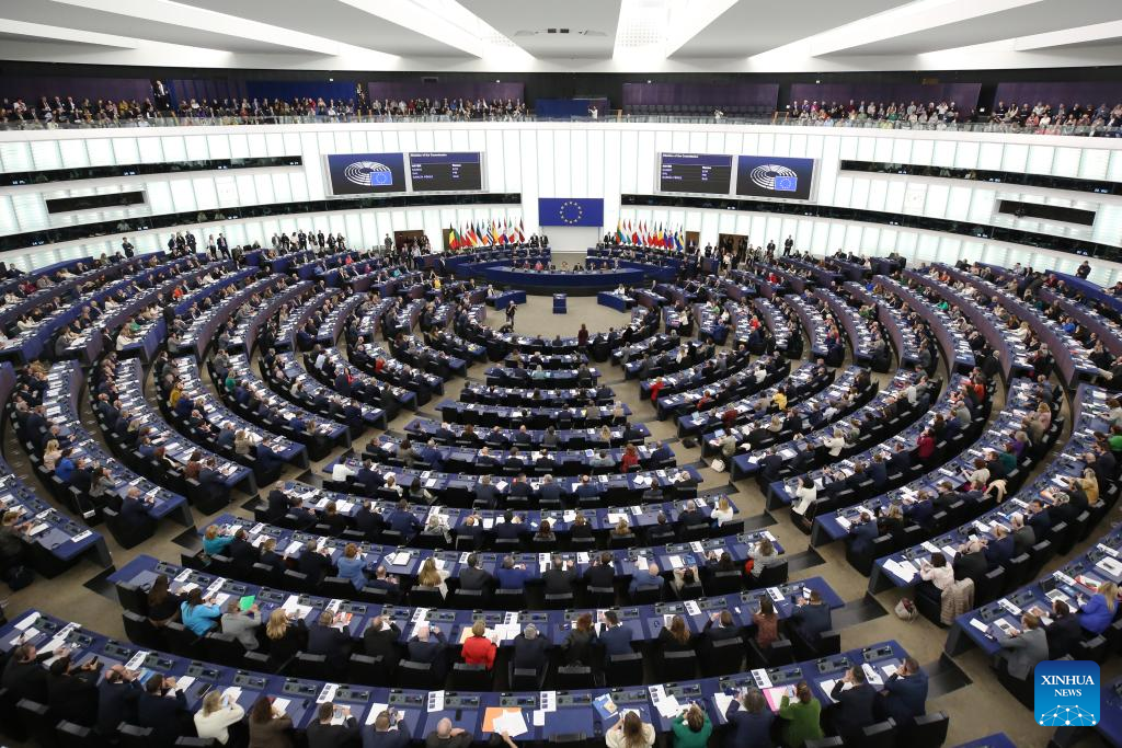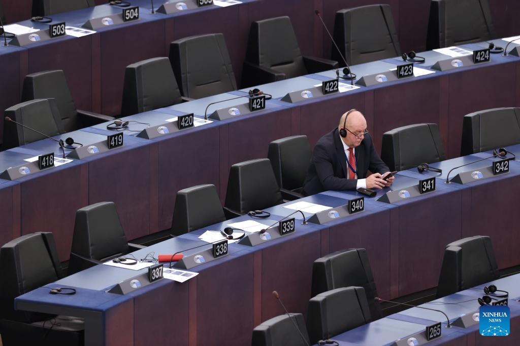 The European Parliament holds a plenary session at its headquarters in Strasbourg, France, Nov. 27, 2024. (Xinhua/Zhao Dingzhe)