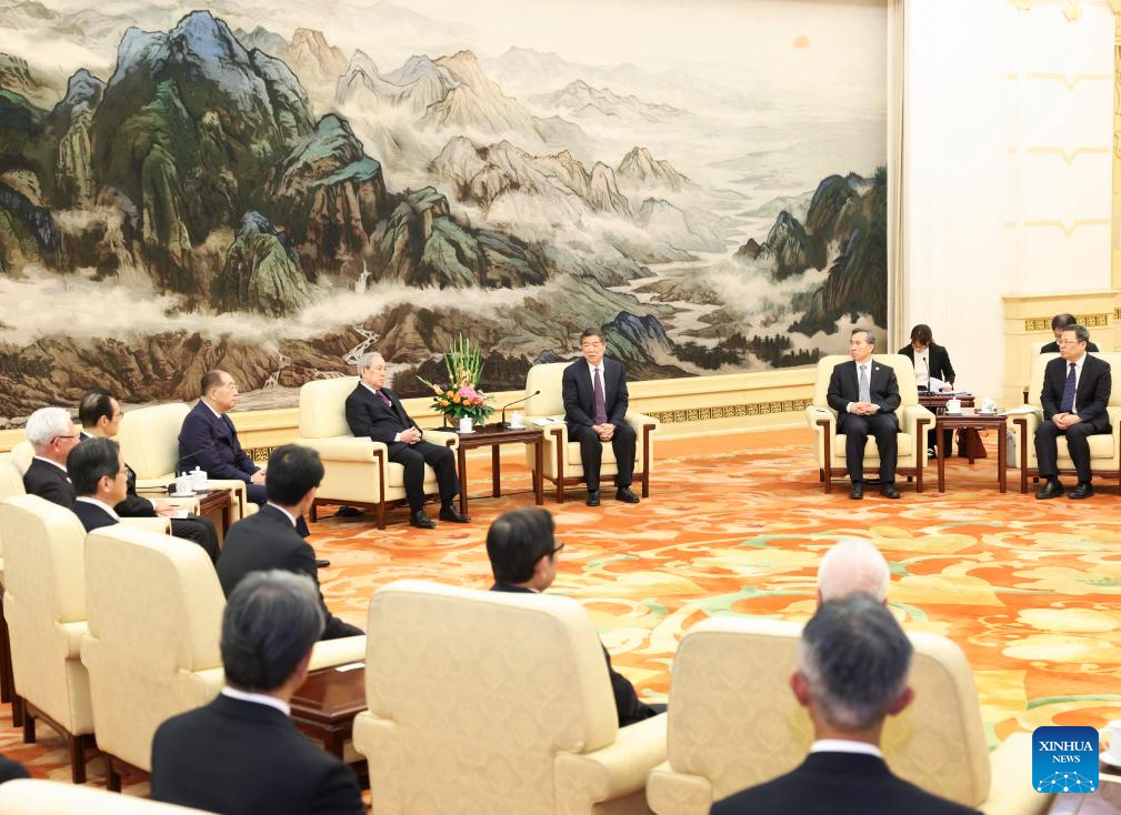 Chinese Vice Premier He Lifeng, also a member of the Political Bureau of the Communist Party of China Central Committee, meets with a delegation from Japan's Kansai business community at the Great Hall of the People in Beijing, capital of China, Nov. 27, 2024. (Xinhua/Pang Xinglei)