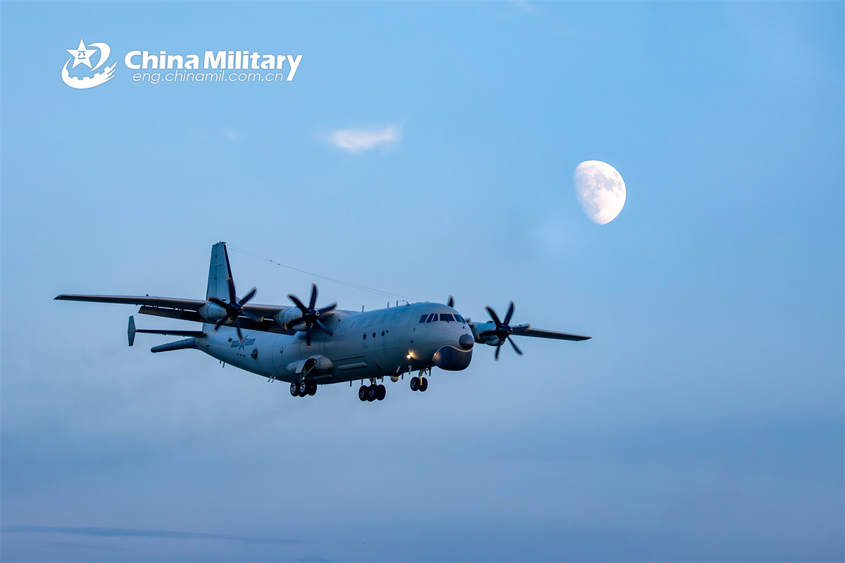 An anti-submarine patrol aircraft attached to an aviation unit with the navy under the Chinese PLA Northern Theatre Command takes off for a collaborative anti-submarine training exercise on October 15, 2024. (eng.chinamil.com.cn/Photo by Yang Lijian)