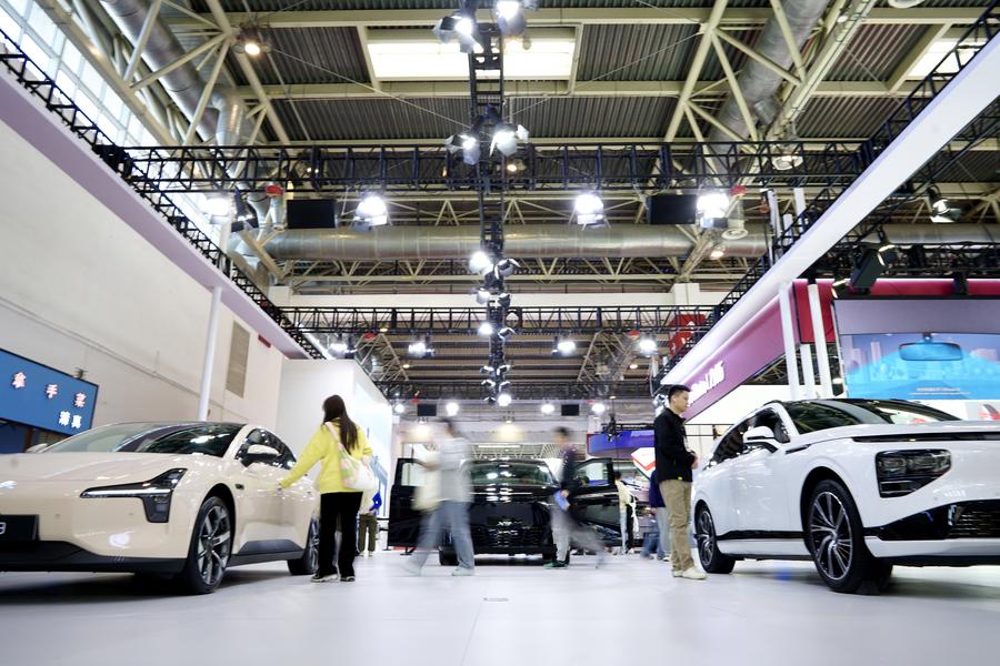 People visit the booth of XPENG at the second China International Supply Chain Expo (CISCE) in Beijing, capital of China, Nov. 28, 2024. (Photo by Na Yuqi/Xinhua)