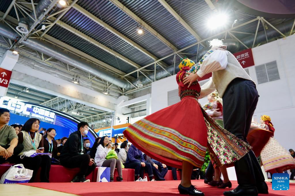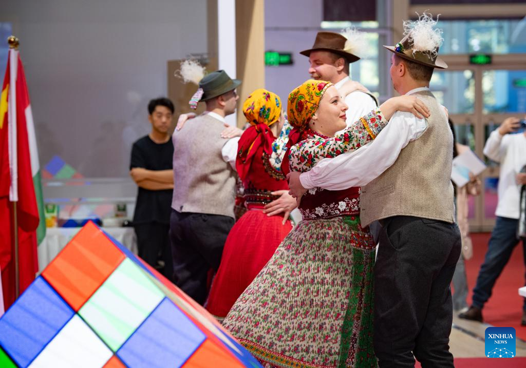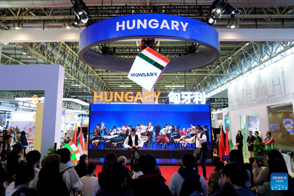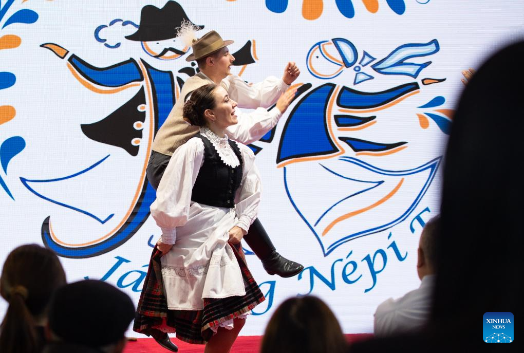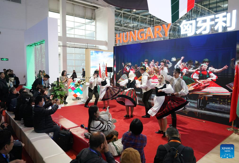 People perform at the Hungary Pavilion of the second China International Supply Chain Expo in Beijing, China, Nov. 26, 2024. This year's expo has Hungary as its guest country of honor. The Hungary Pavilion showcases Hungary's leading industries, unique resources, cultural heritage, beautiful landscapes and national brand image. (Xinhua/Zhang Chenlin)